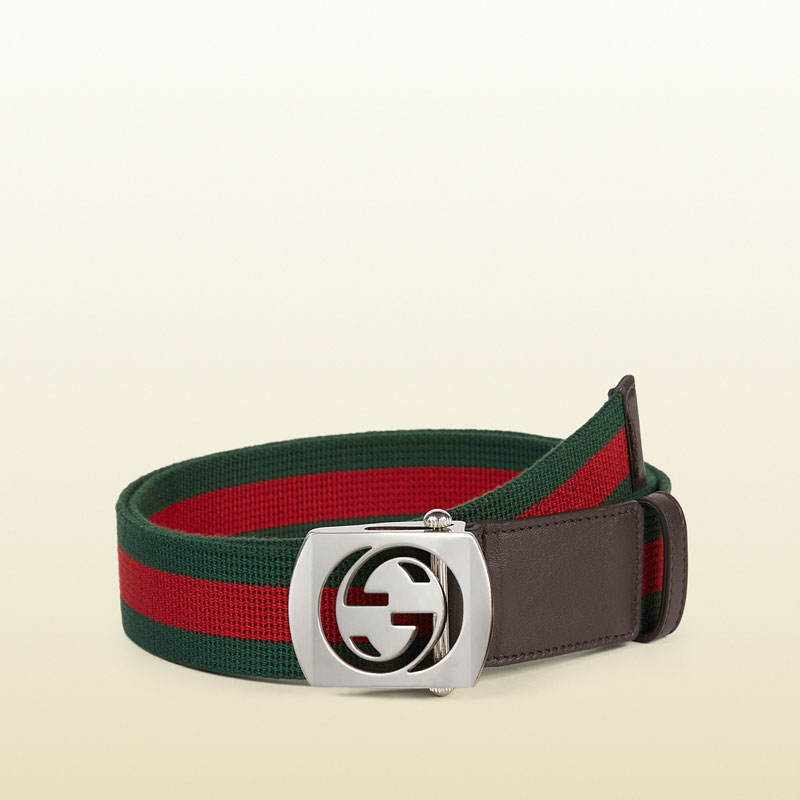 Gucci canvas belt with cut out interlocking G buckle 387032 H1FIN 2061