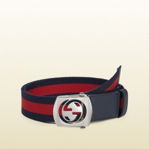 Gucci canvas belt with cut out interlocking G buckle 387032 H1FIN 8497