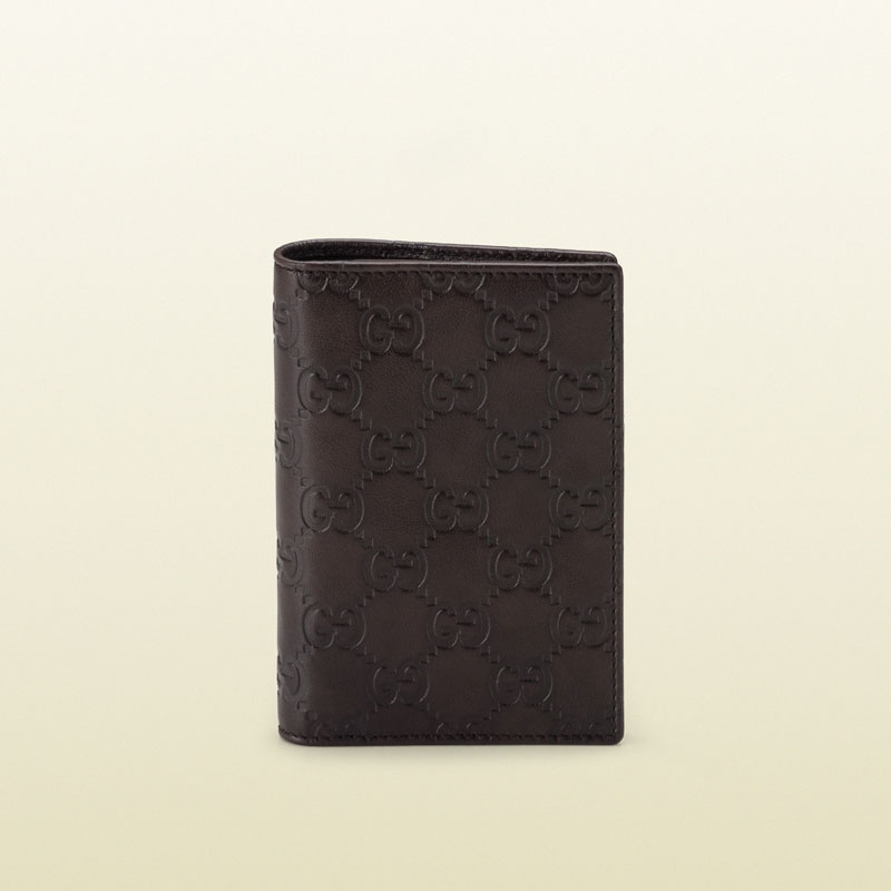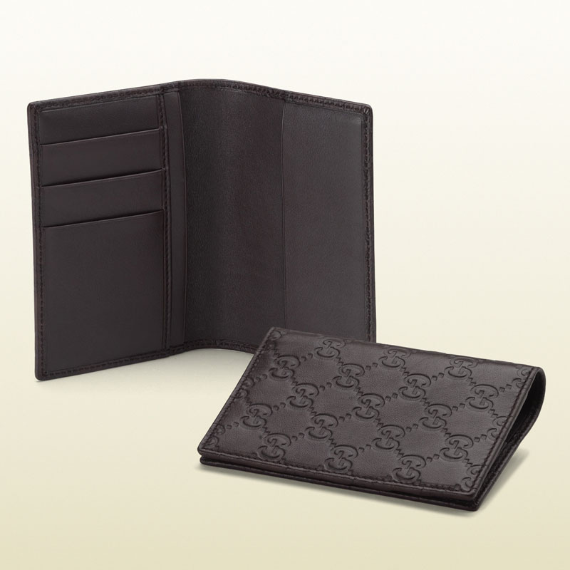 Ensure first-class treatment throughout your travels with our luxurious dark brown guccissima leather passport case. Featuring three card slots and two interior pockets, this stylish holder will keep you organized from check-in through baggage claim.
