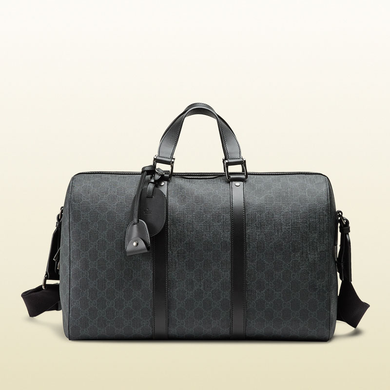 - black/grey gg supreme canvas, made using an earth-conscious process, with black leather detail