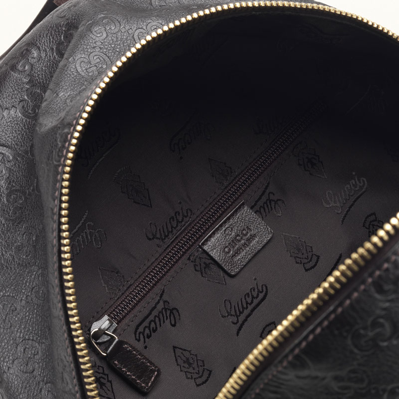- dark brown guccissima leather with dark brown leather trim
