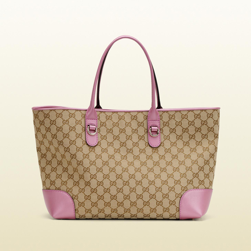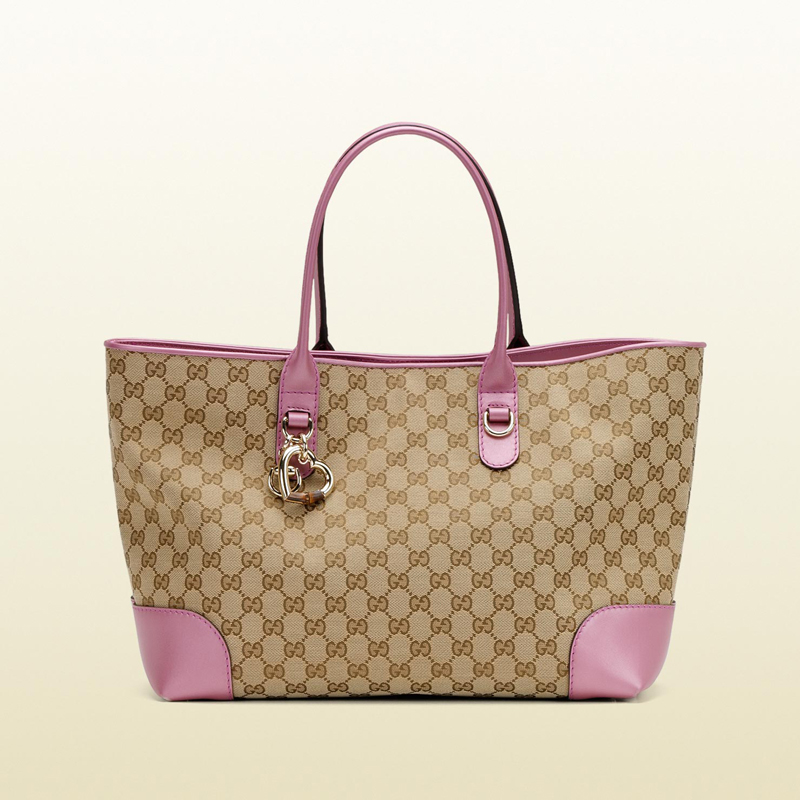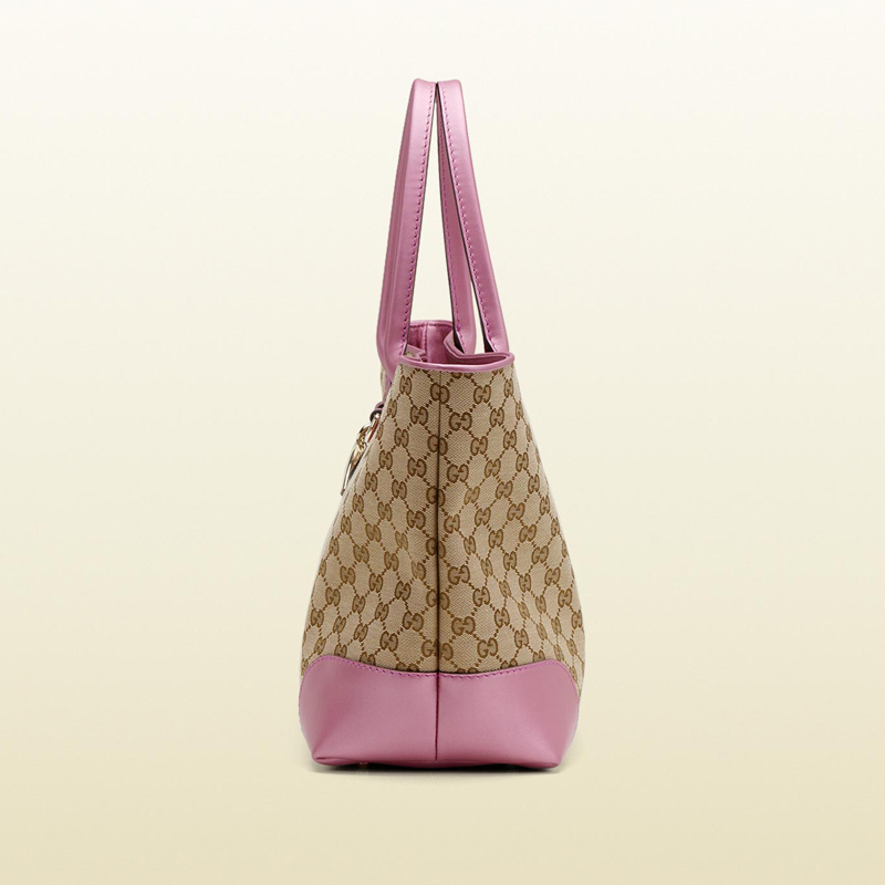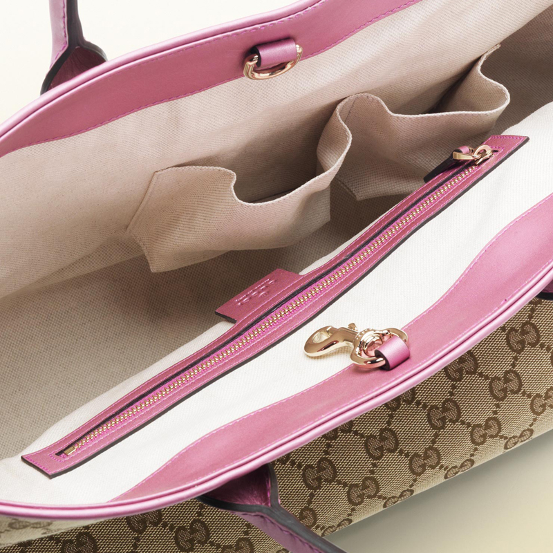 - beige/ebony original GG fabric with metallic freesia rose color leather trim