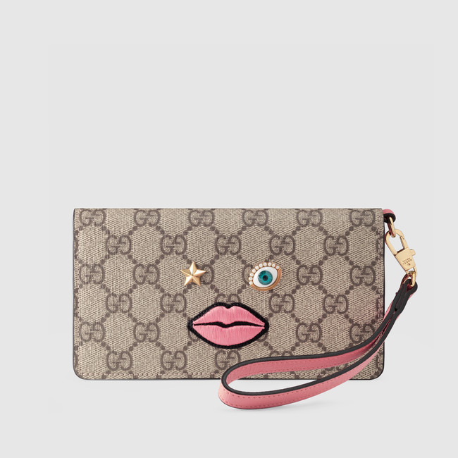 This iPhone 6 Plus case has five card slots and pocket for phone and is made in our GG Supreme canvas and has a star, eye and mouth appliqu茅 on the front which forms a face.