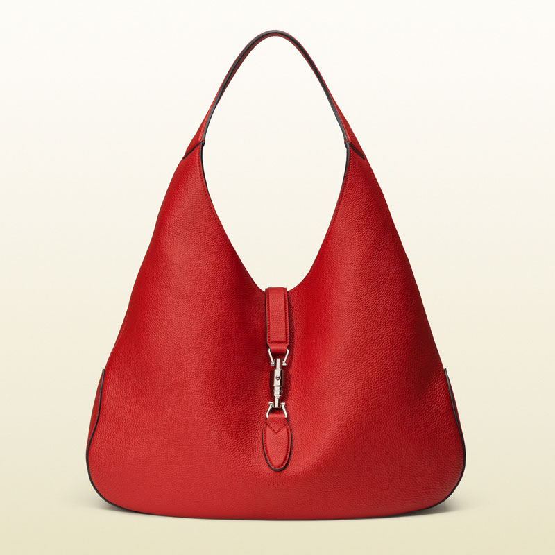 an elegant update of a gucci icon, the jackie soft hobo is undeniably chic. with a classic piston closure, the style is as versatile as it is feminine. there is an unexpected thickness to our soft grain leather, which gives this bag beautiful structure while maintaining its slouchy shape. the inner side was specially sueded to act as a protective interior.
