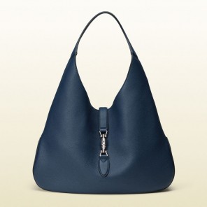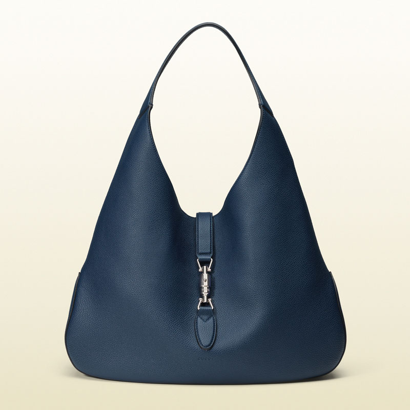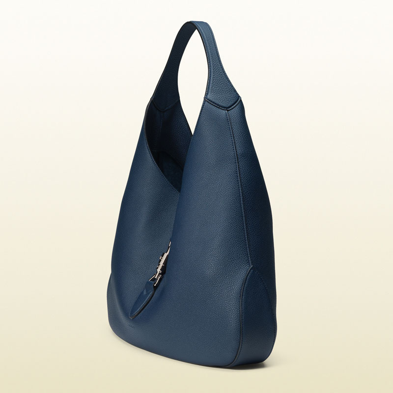 an elegant update of a gucci icon, the jackie soft hobo is undeniably chic. with a classic piston closure, the style is as versatile as it is feminine. there is an unexpected thickness to our soft grain leather, which gives this bag beautiful structure while maintaining its slouchy shape. the inner side was specially sueded to act as a protective interior.