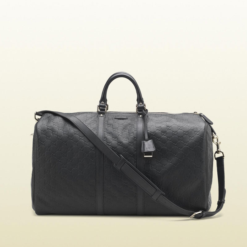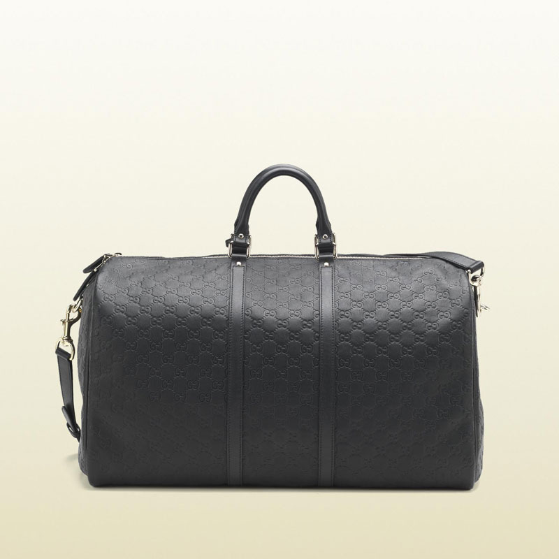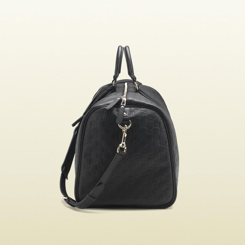 Chic, understated and elegant, our large black guccissima leather duffle makes a sartorial statement whether you're on a business trip or heading out of town for a weekend getaway.