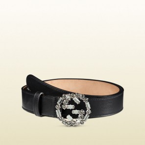 Gucci leather belt with crystal interlocking g buckle 354381 AP0IN 8176