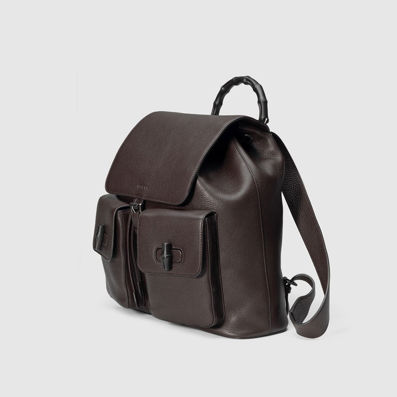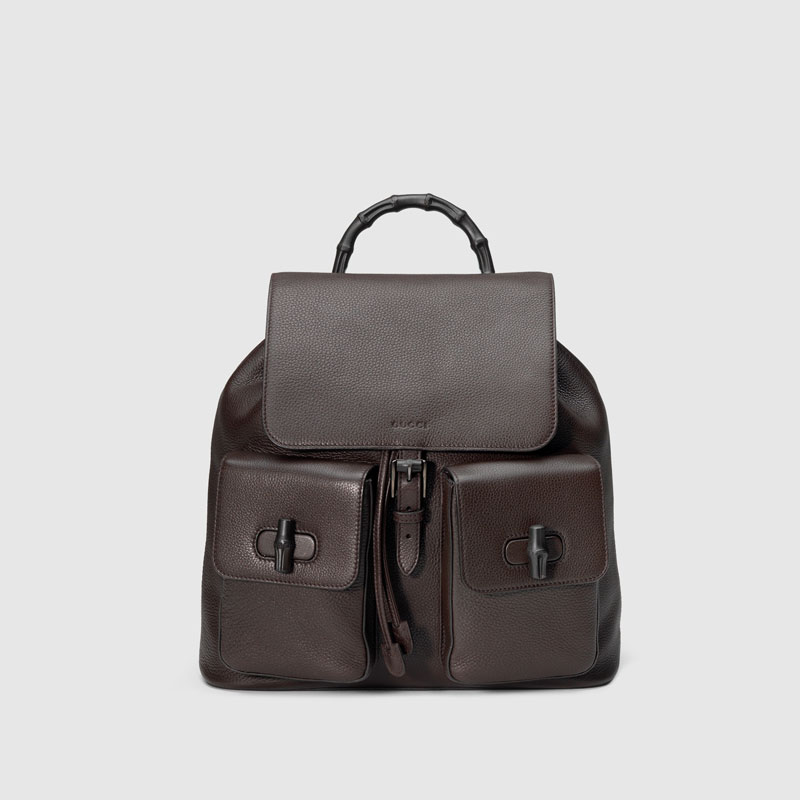 This sophisticated style is crafted from supple leather and finished with our iconic bamboo details at the handle and flap closures.