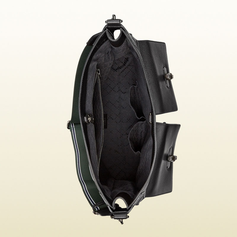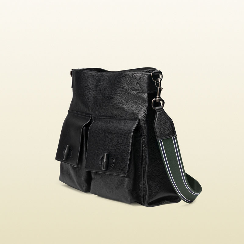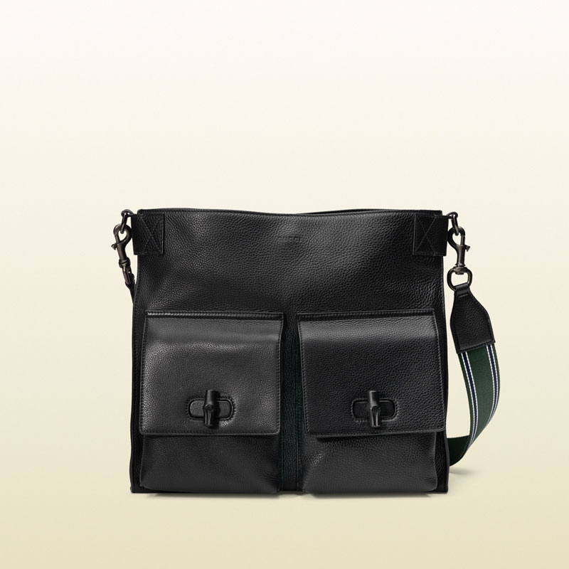 this sharply sophisticated style is crafted from supple leather and finished with our iconic bamboo details at the flap closures.