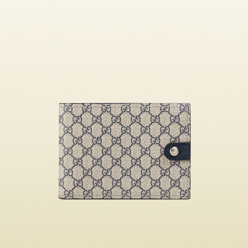 This essential bi-fold wallet boasts signature style in our micro GG supreme canvas with contrast leather details.