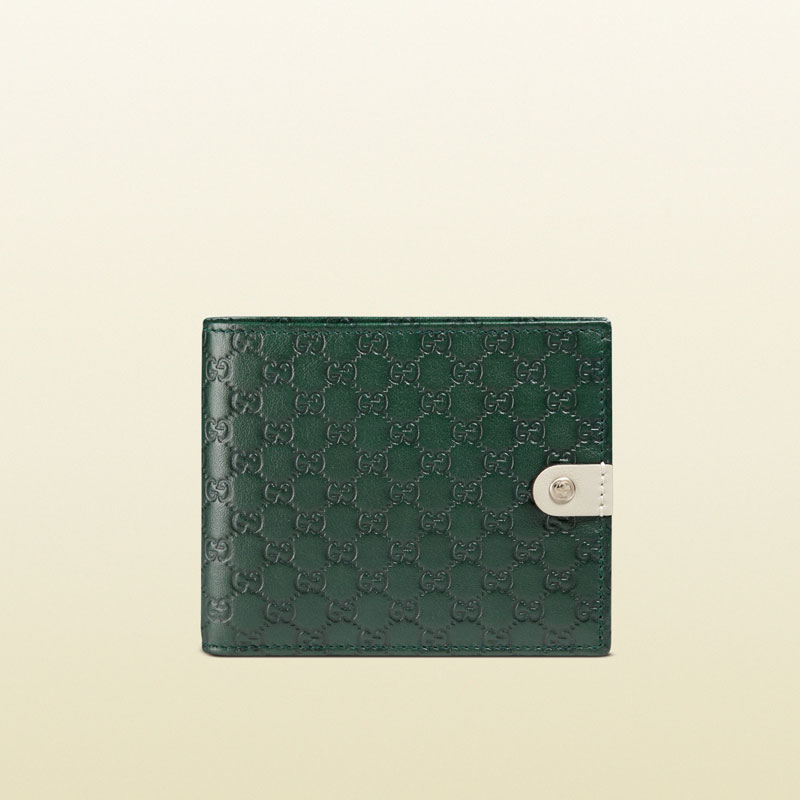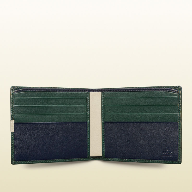 This essential bi-fold wallet boasts refined signature style in our microguccissima leather with contrast leather details.