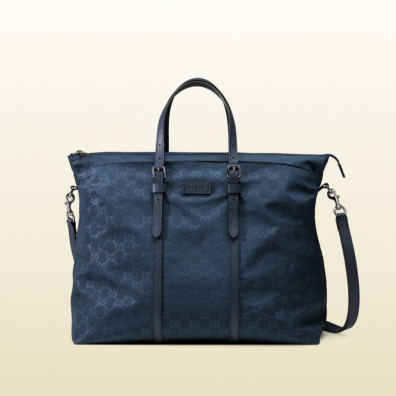 An essential addition to our lifestyle collection, this carry-on duffel bag is crafted from our new nylon guccissima light, a featherweight fabric with a contemporary attitude due to its silky sheen and iconic GG motif. Leather trims add an elevated touch.