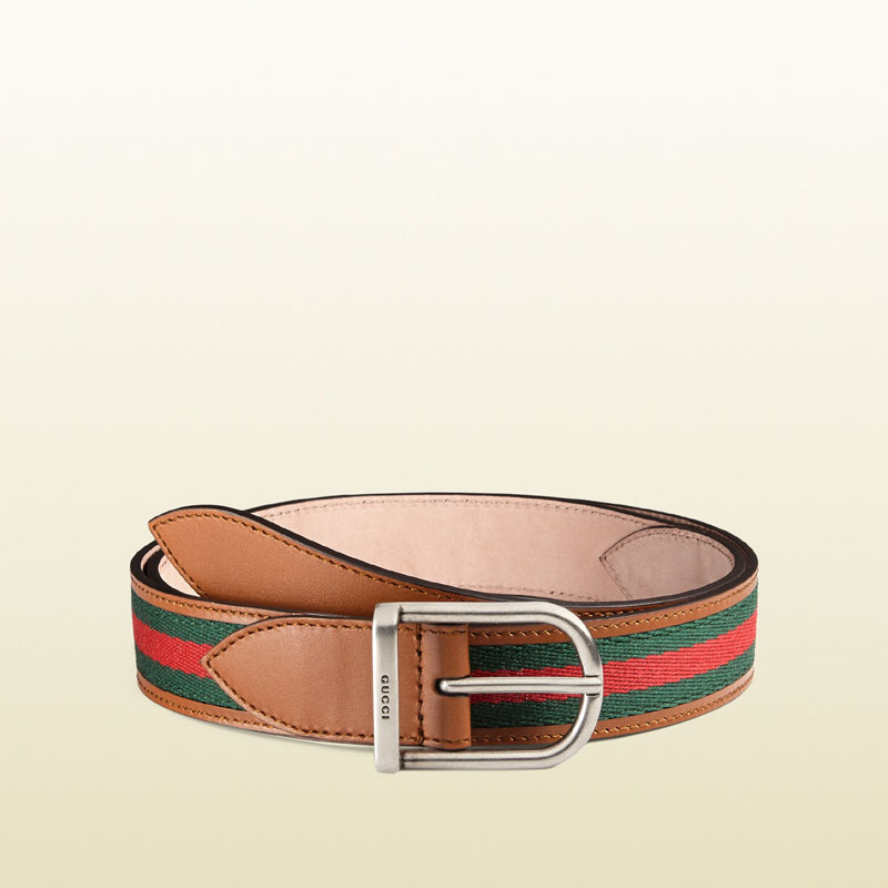 Gucci nylon web leather belt with rounded buckle 368189 BGHUN 2574