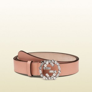Gucci pink leather belt with crystal interlocking g buckle 354381 AP00K 5806