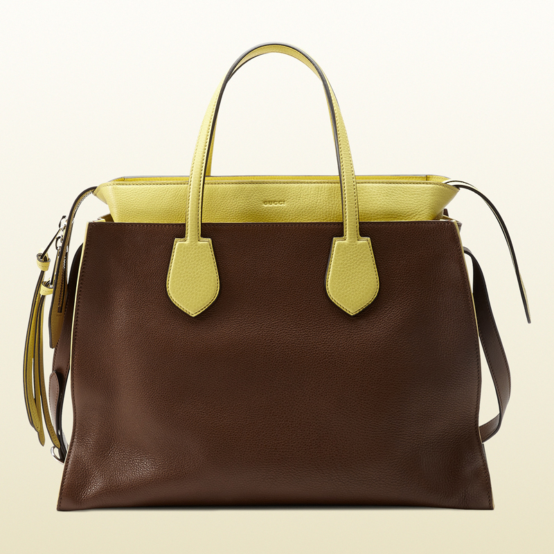 crafted in our two-toned soft, natural grain leather, the large gucci ramble tote is a style all to itself. hand-constructed with the utmost precision, this elegant handbag is playful, modern, and unmistakably original.