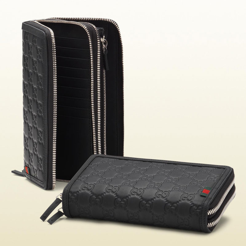 Gucci rubber guccissima leather double zip around wallet