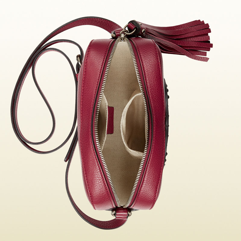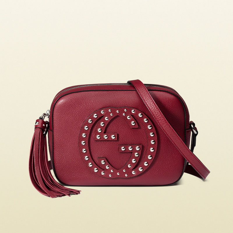 its name may inspire nights out, but its compact size and go-to ease make this bag an everyday essential. crafted in our light, natural grain leather and adorned with studs.