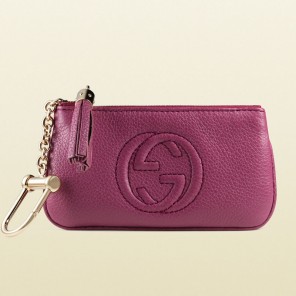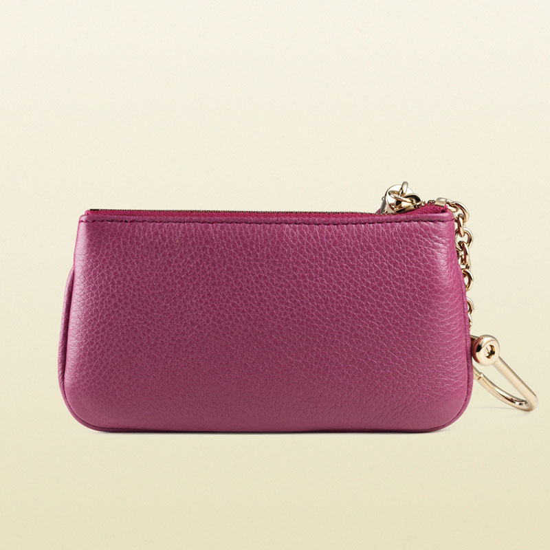 - dusty rose leather- embossed interlocking G detail- tassel detail- 5"W x 2.7"H x .5"D