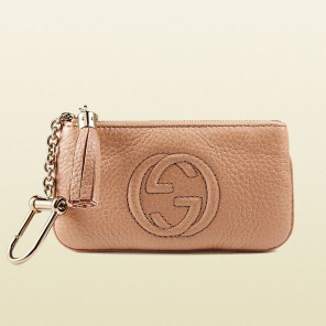 - rose beige leather- embossed interlocking G detail- tassel detail- 5"W x 2.7"H x .5"D