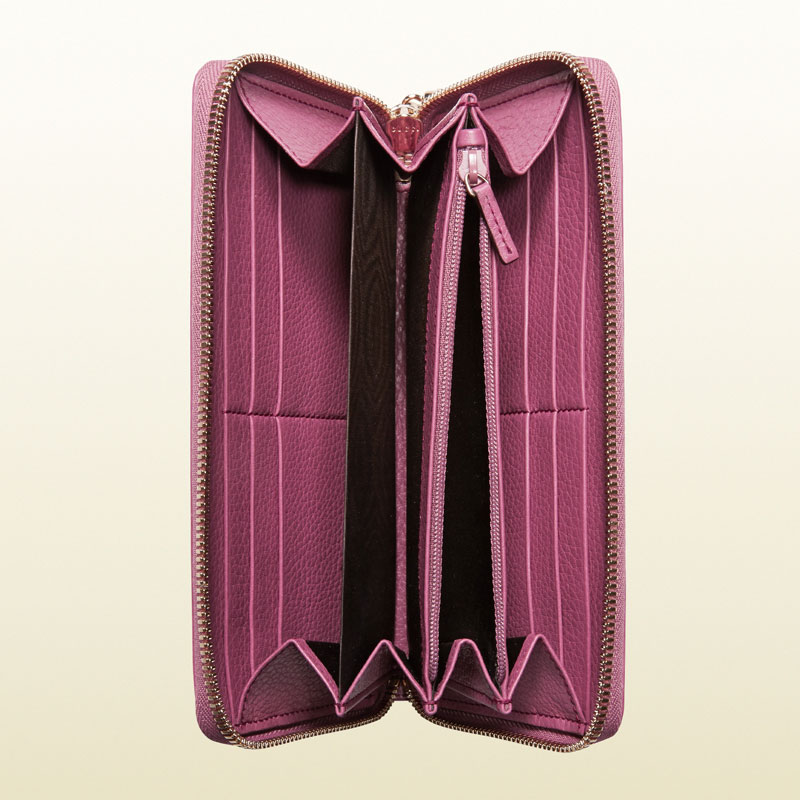 Simply stated in a classic zip around shape and rendered in our light, natural grain leather.