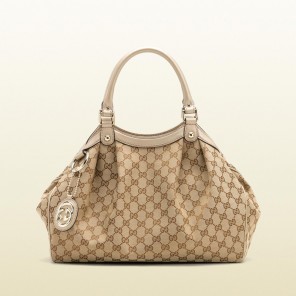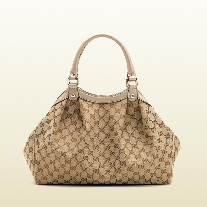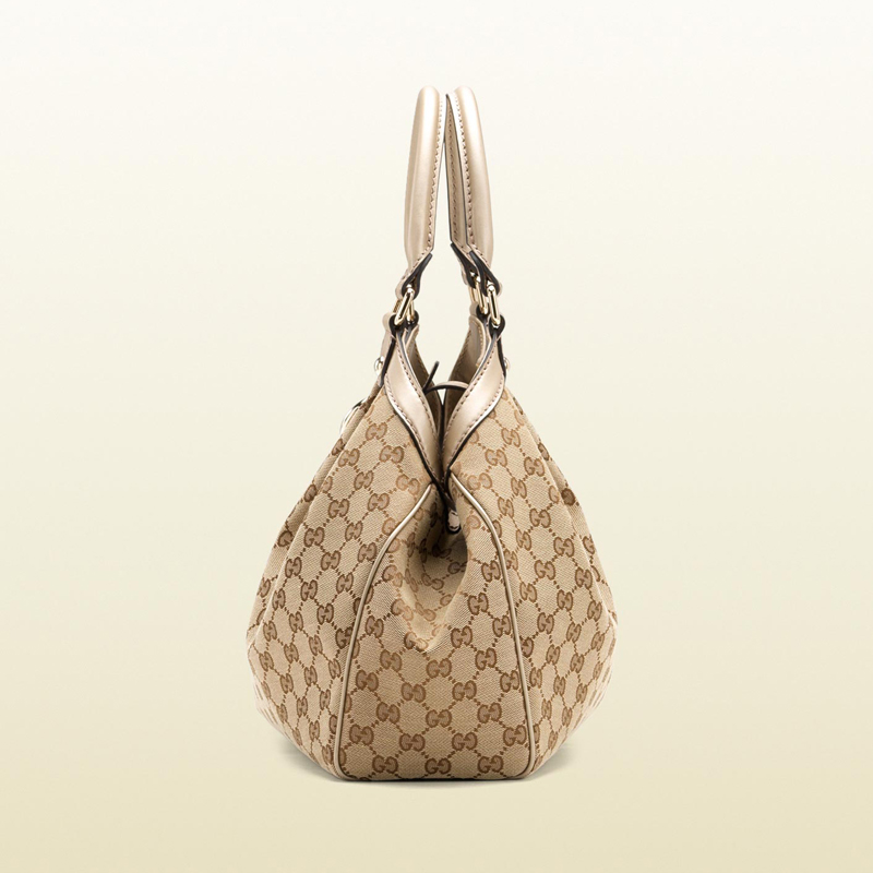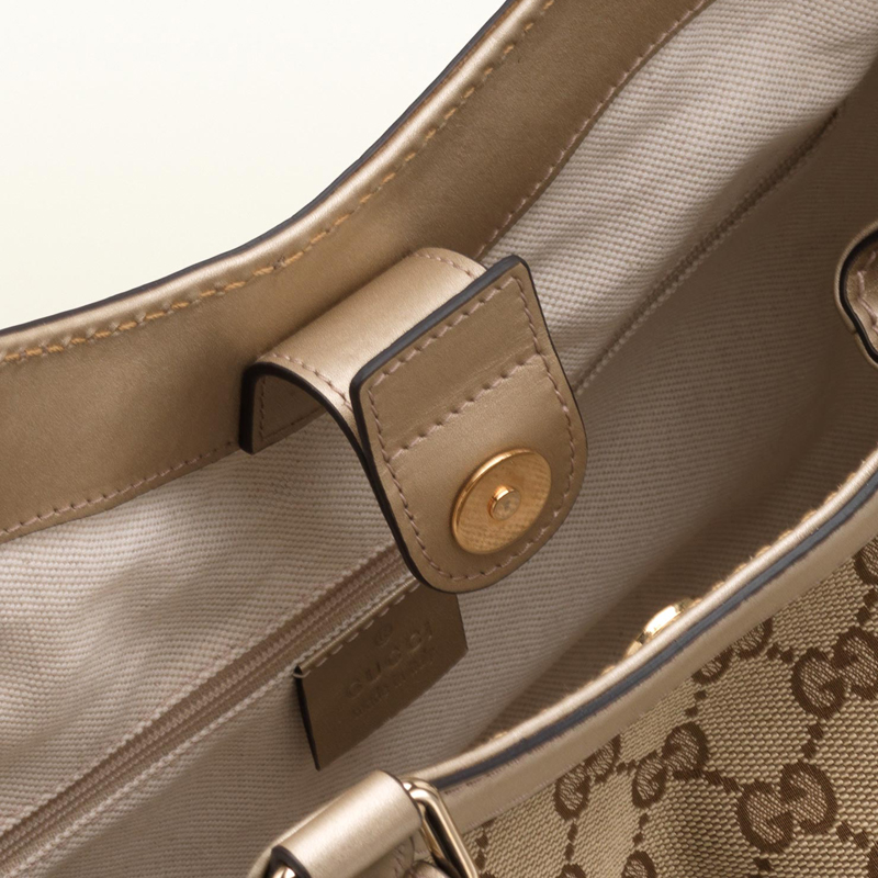 - beige/ebony original GG fabric with metallic champagne color leather trim