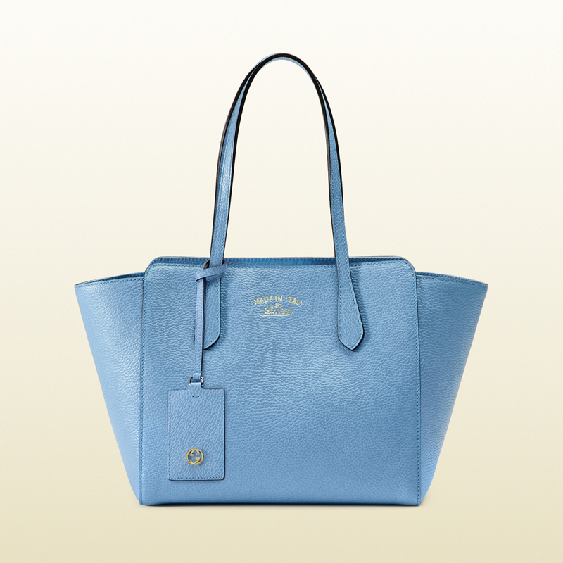 designed with daywear in mind our small gucci swing tote is delightfully dependable with the perfect amount of interior space. crafted in our resistant, textured leather.