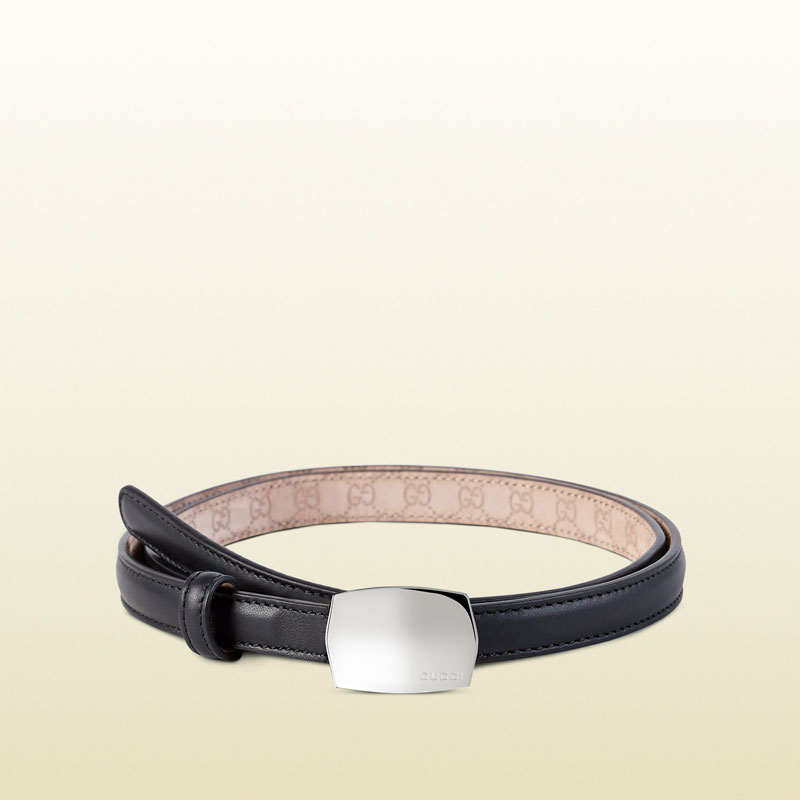 Gucci thin leather belt with plaque buckle 388993 AP00N 1000