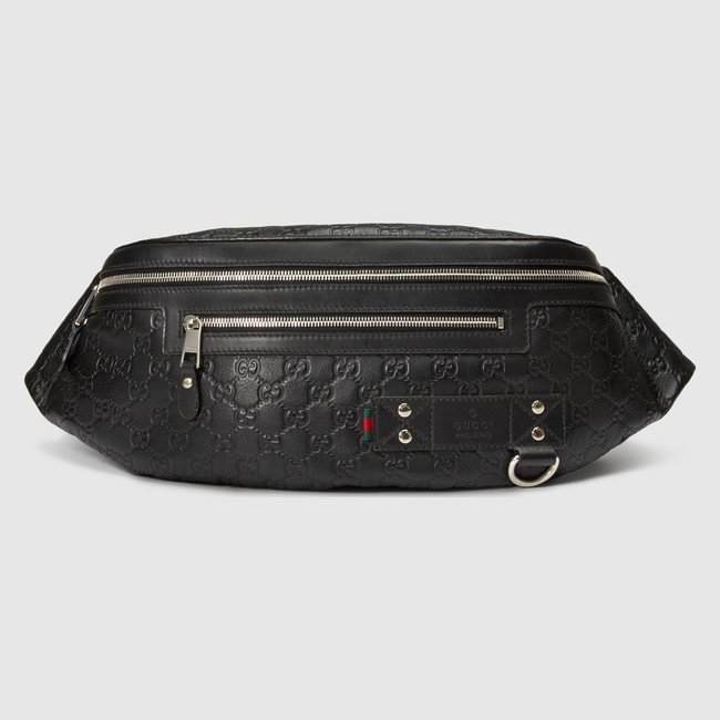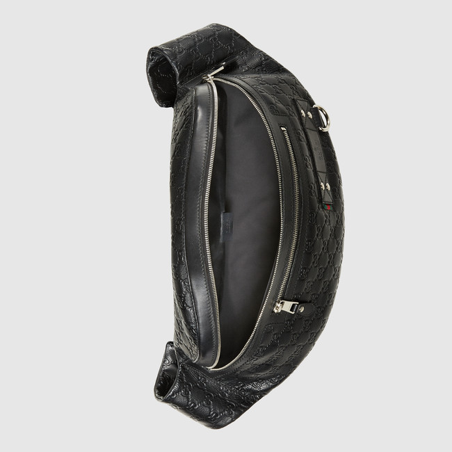 - Adjustable waist or shoulder strap with Gucci trademark engraved clip closure