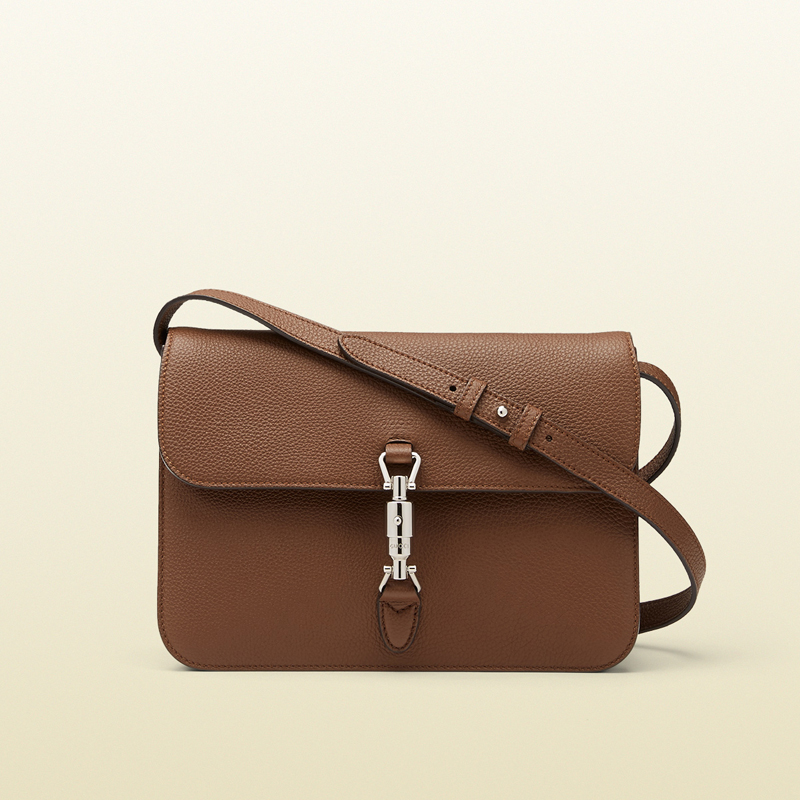 taking its iconic inspiration to the present day, the jackie soft shoulder bag joins timeless notes, like the classic piston closure, with versatile modern design. there is an unexpected thickness to our soft grain leather, which gives this bag beautiful structure while maintaining its slouchy shape. the inner side was specially sueded to act as a protective interior.