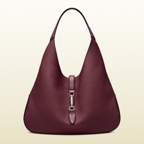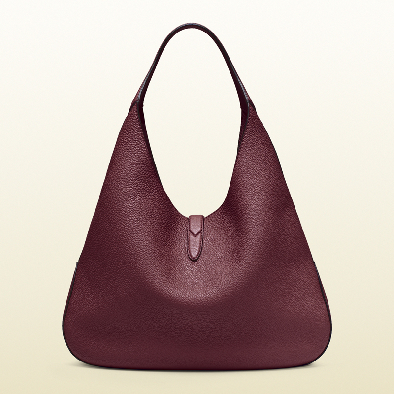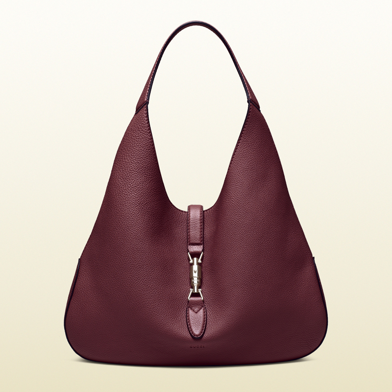 an elegant update of a gucci icon, the jackie soft hobo is undeniably chic. crafted in supple leather with a classic piston closure, the style is as versatile as it is feminine. there is an unexpected thickness to our soft grain leather, which gives this bag beautiful structure while maintaining its slouchy shape. the inner side was specially sueded to act as a protective interior.