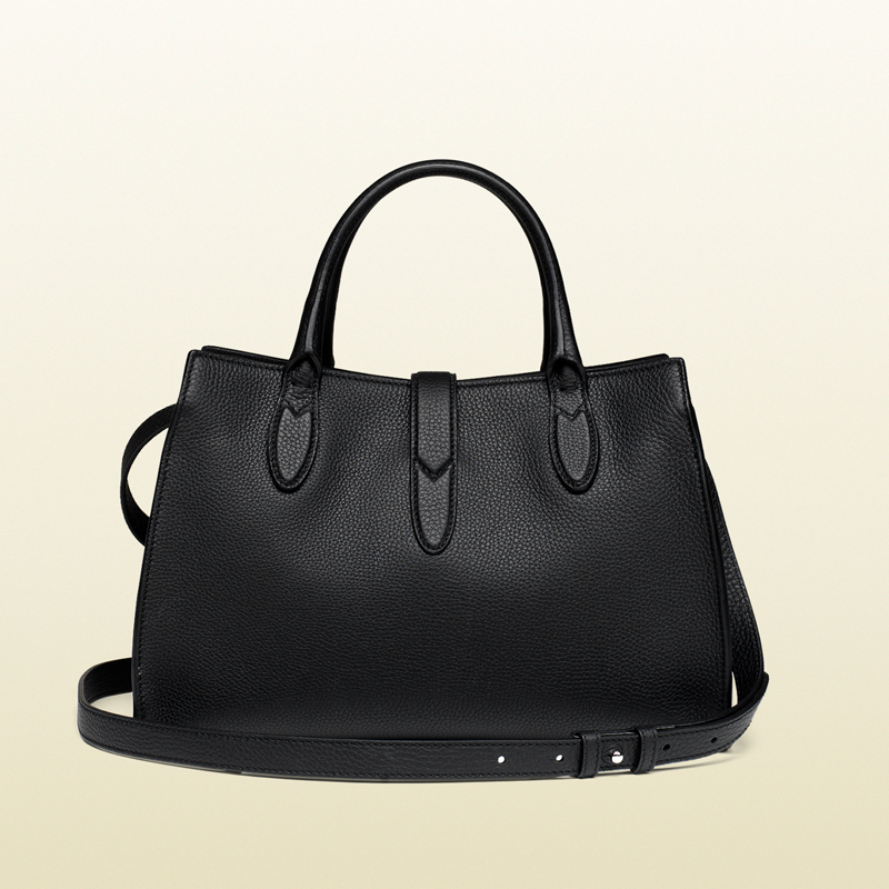 exclusively available on gucci.com. crafted by hand out of supple unlined leather, the jackie soft top-handle merges timeless detailing and a go-everywhere design to become a modern style essential. there is an unexpected thickness to our soft grain leather, which gives this bag beautiful structure while maintaining its slouchy shape. the inner side was specially sueded to act as a protective interior.