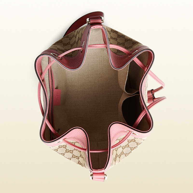 in a shape that has become the new handbag staple, this mid-size bucket bag blends our classic gg canvas with vivid seasonal hues.