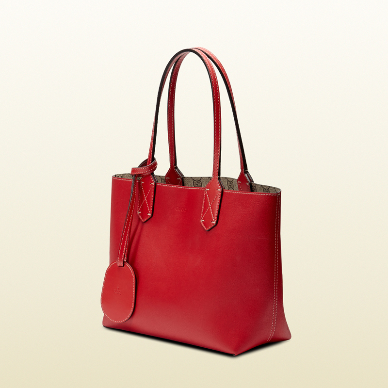 small in stature but big in style, this reversible tote is made in our innovative leather, patented exclusively to gucci.