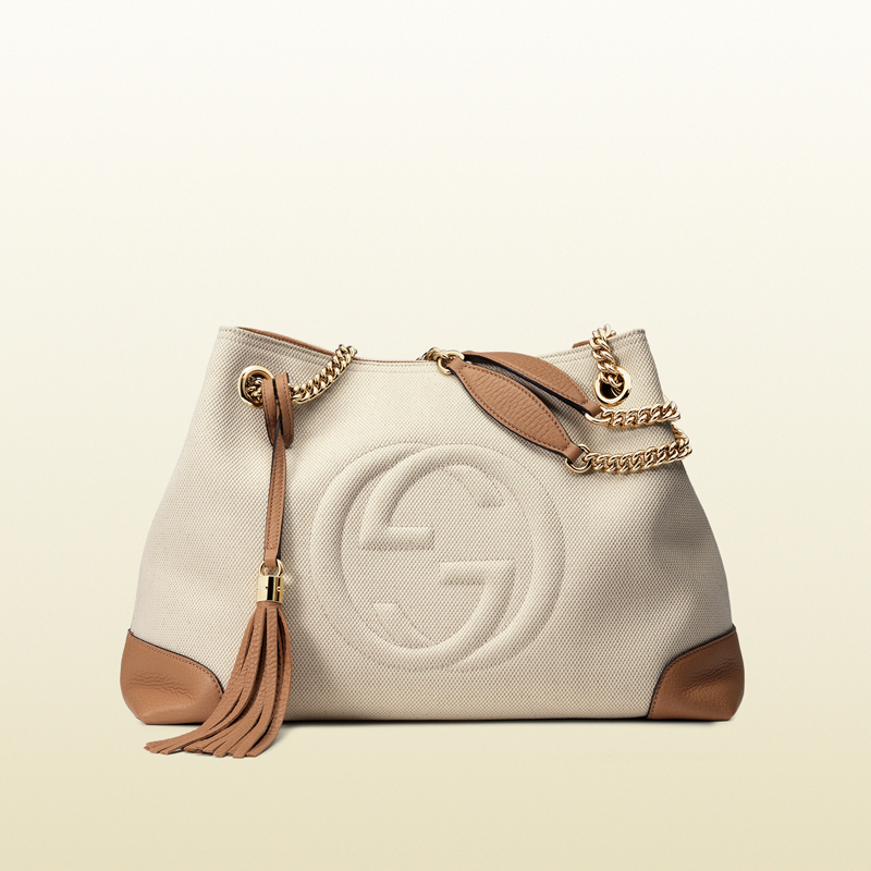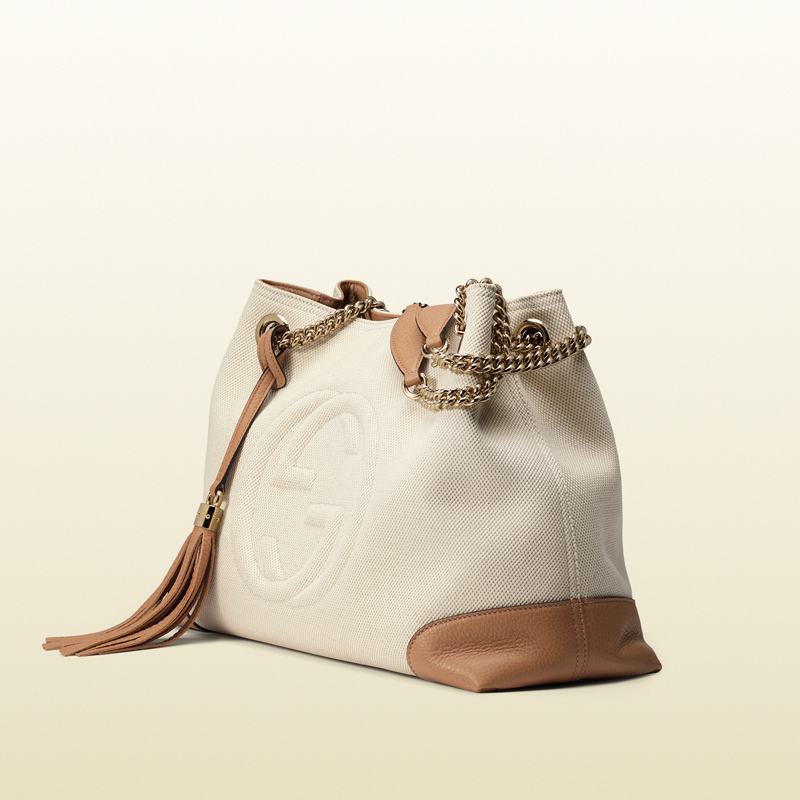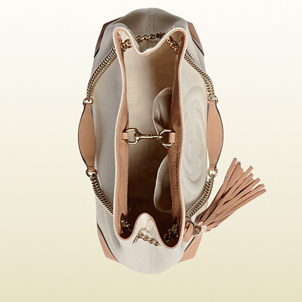 - double chain shoulder straps with leather shoulder pad 7" drop