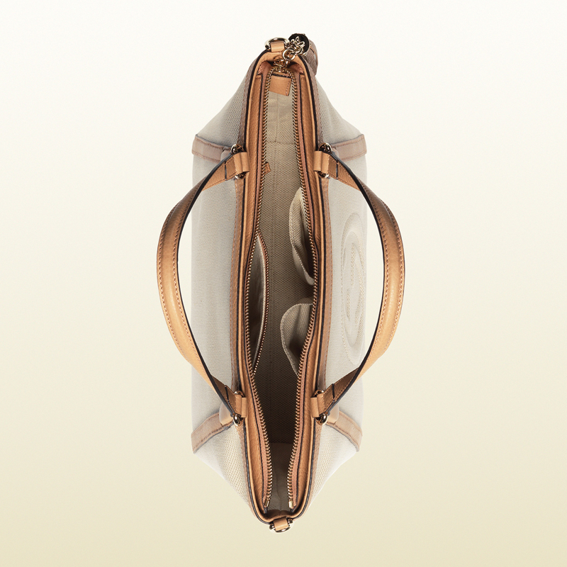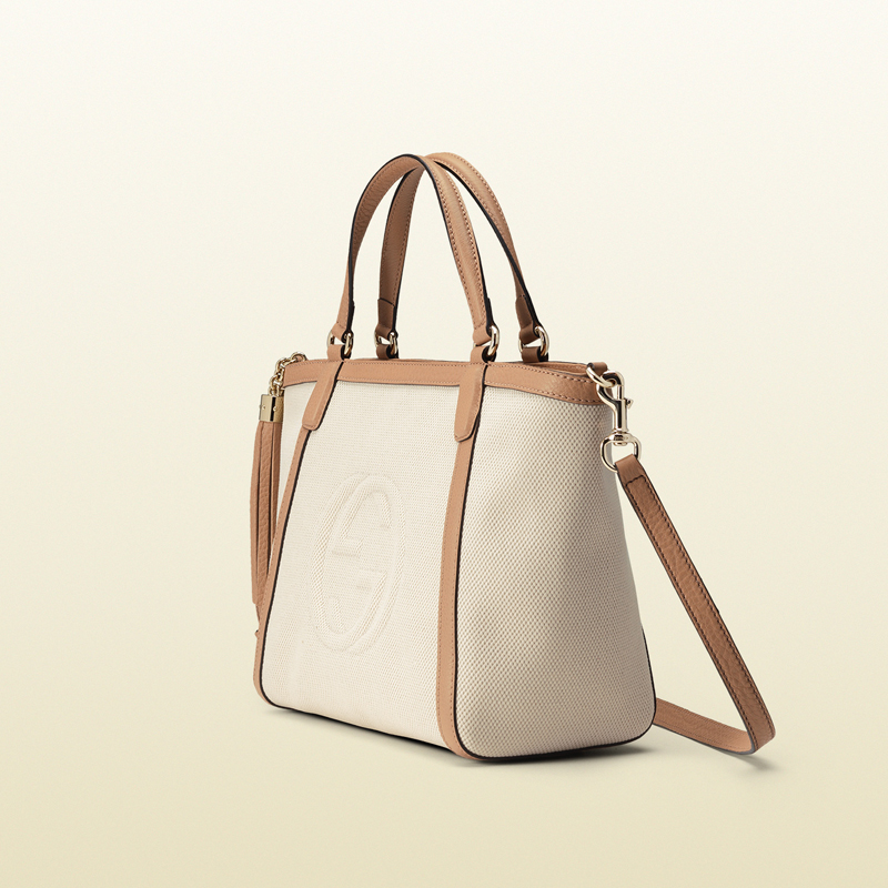designed to elevate your look when you're off the clock, the classic top-handle gets a lift in bright canvas with rose beige leather trim.