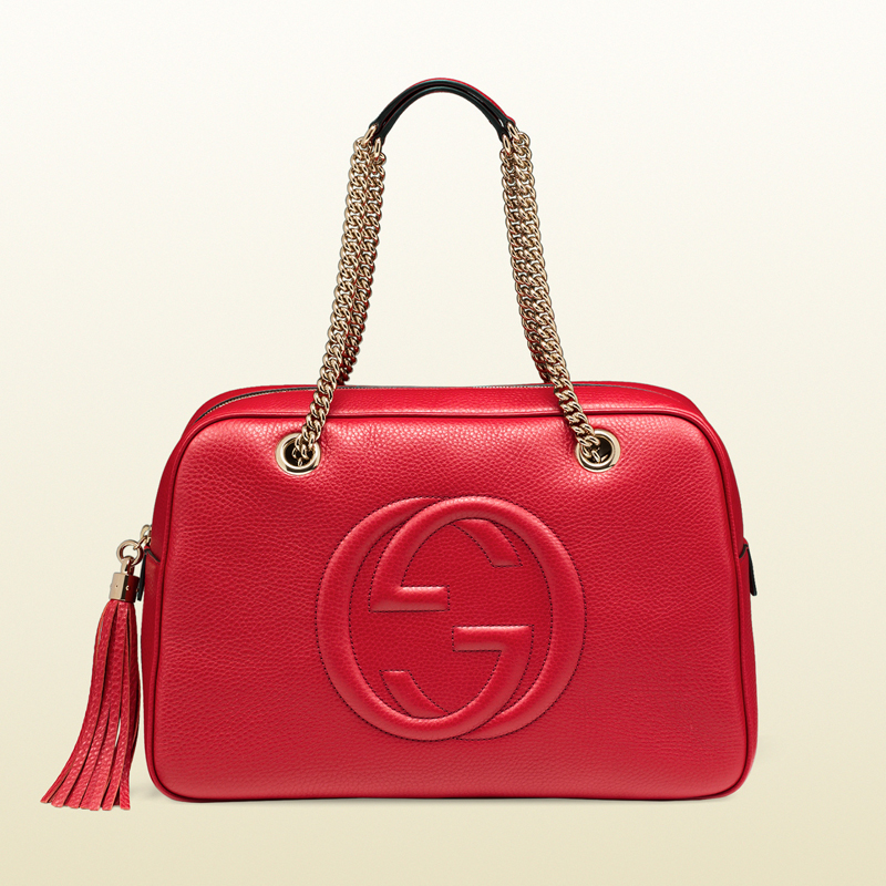 - double shoulder chain straps with leather shoulder pads, 8.7" drop and mounted with rivets