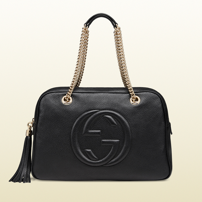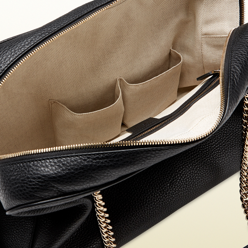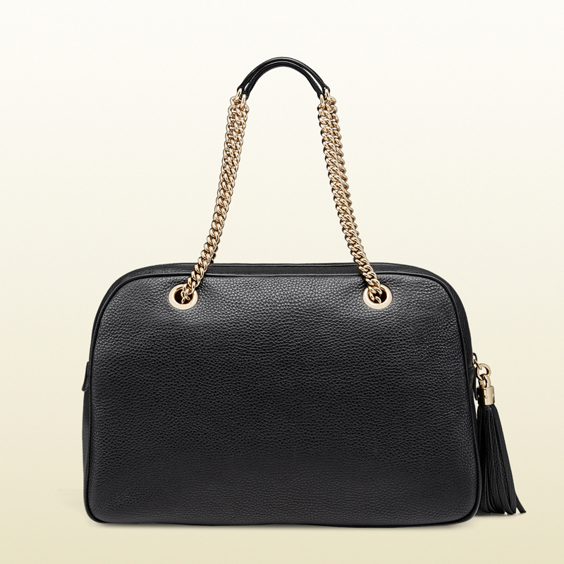 - double shoulder chain straps with leather shoulder pads, 8.7" drop and mounted with rivets