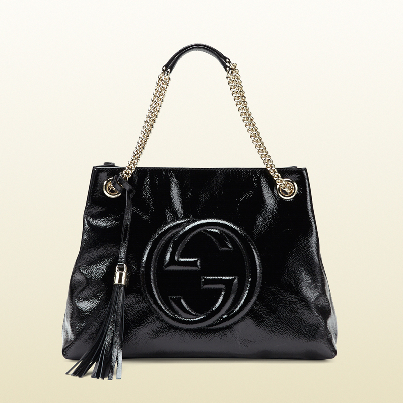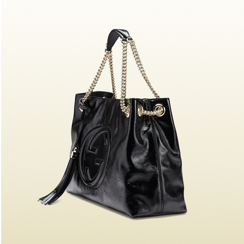 - double chain shoulder straps with leather shoulder pad 7" drop