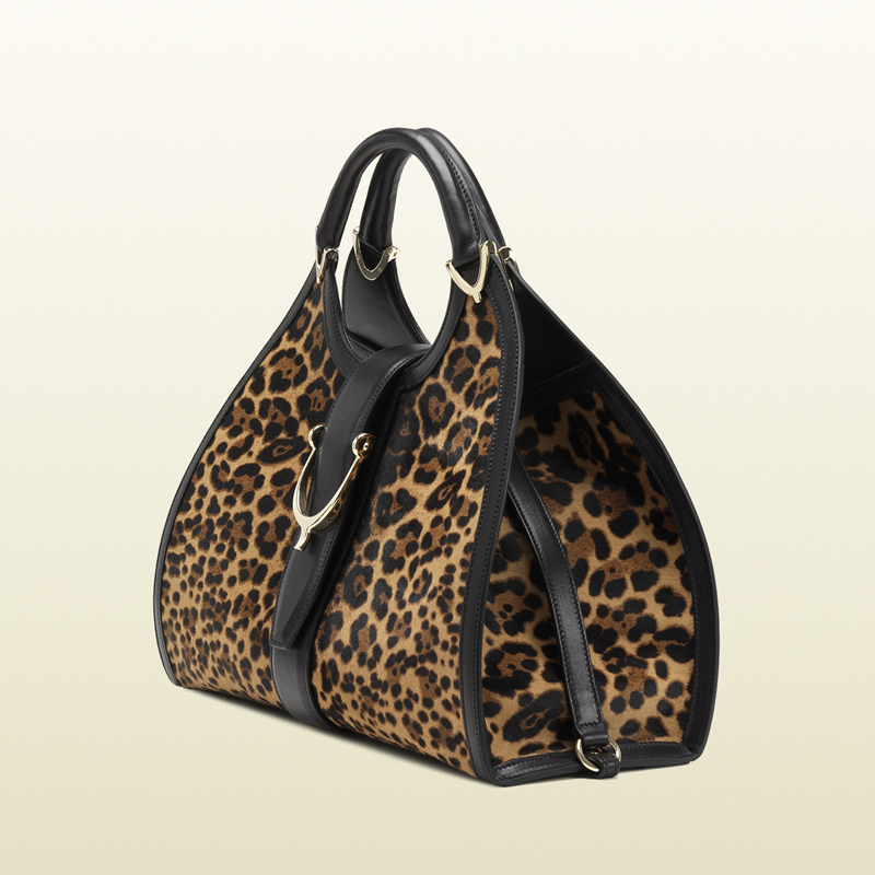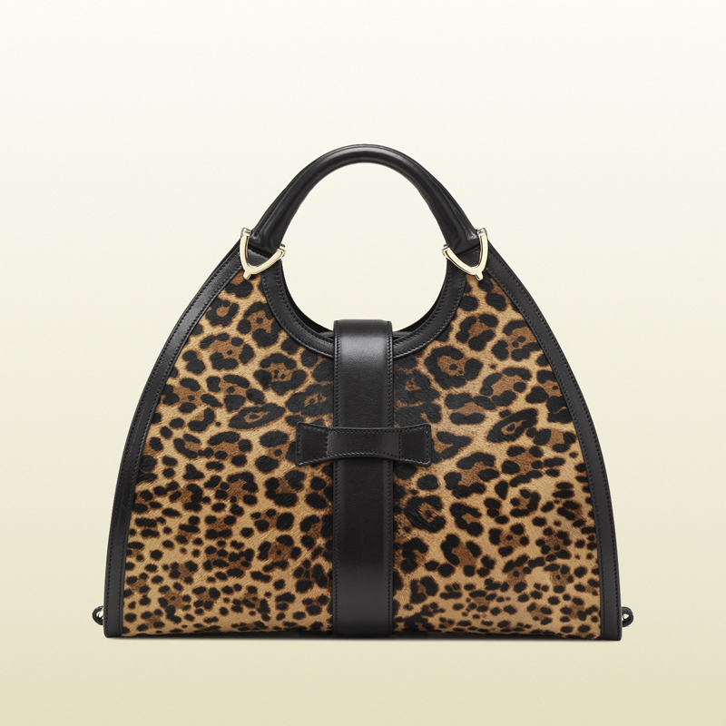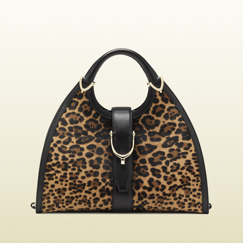 Stirrup jaguar print top handle bag