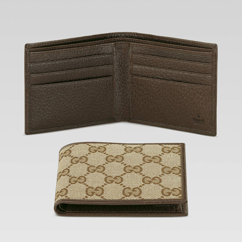 -beige/ebony GG fabric with dark brown leather trim/interior-six card slots and two bill compartments