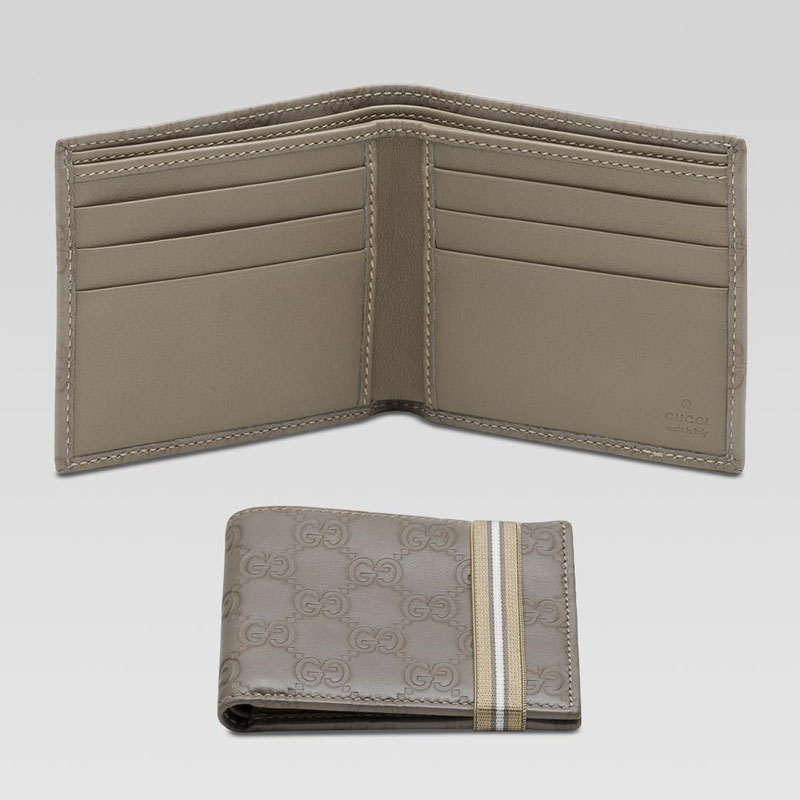 -taupe guccissima leather with taupe leather trim/interior-sand/taupe/white signature web elastic closure-six card slots and two bill compartments