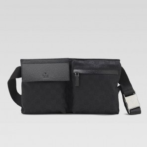-adjustable waist or shoulder strap in black signature web with gucci trademark -engraved clip closure