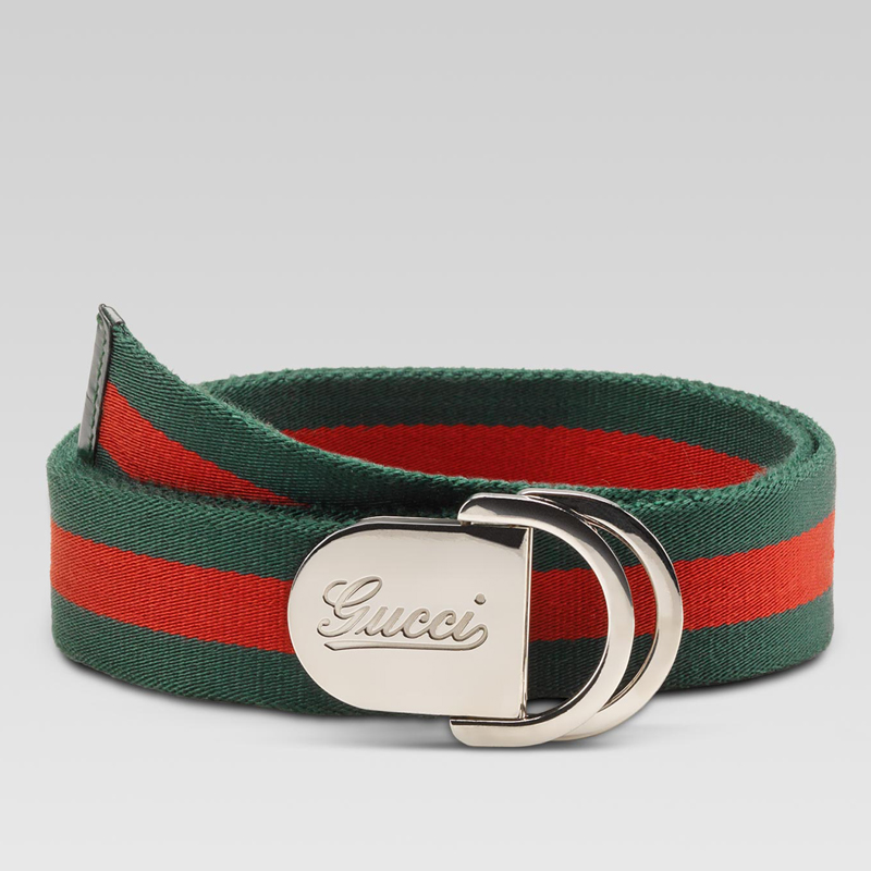 - green/red/green signature web with green leather trim - palladium hardware - 4 cm width