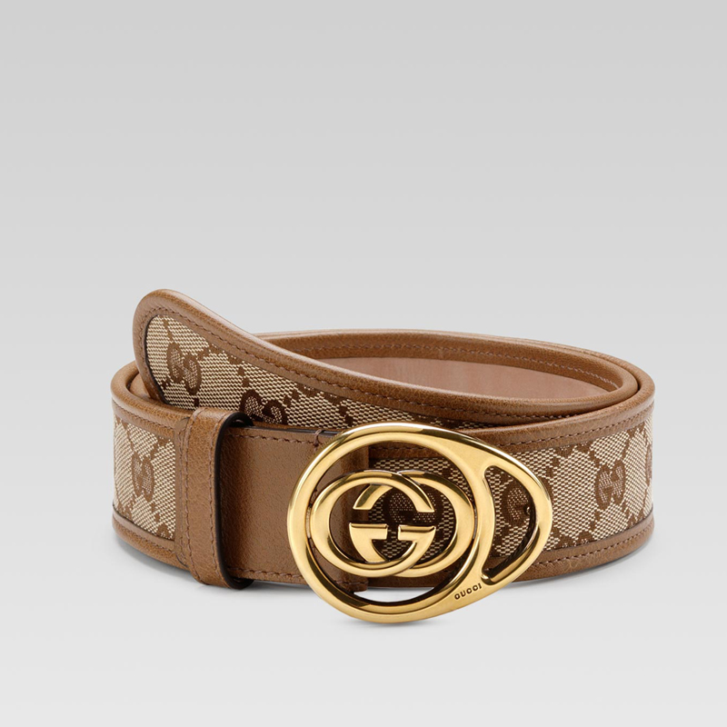 - website exclusive - beige/ebony GG fabric with light brown leather trim - antique brass hardware - 1.6" width