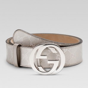 - silver GG coated fabric with silver leather trim - nickel hardware - 1.6" width