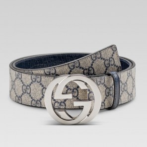 - beige/blue GG plus with blue leather trim - silver hardware - 1.6" width