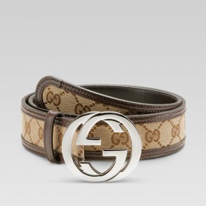 - beige/ebony GG fabric with brown leather trim - silver hardware - 4 cm width