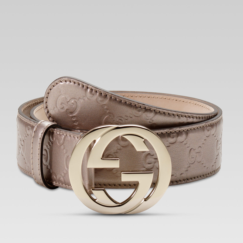 - mauve metallic guccissima leather - light gold hardware - 4 cm width
