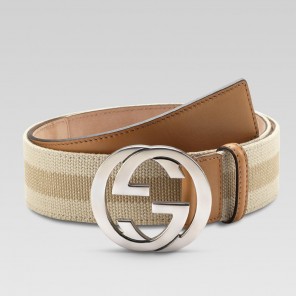 - ecru/beige/ecru web with honey color leather trim - dark palladium hardware - 4 cm width