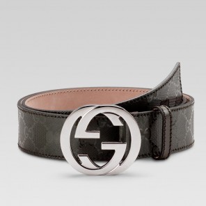 - military green GG imprim茅 with military green leather trim - palladium hardware - 4 cm width